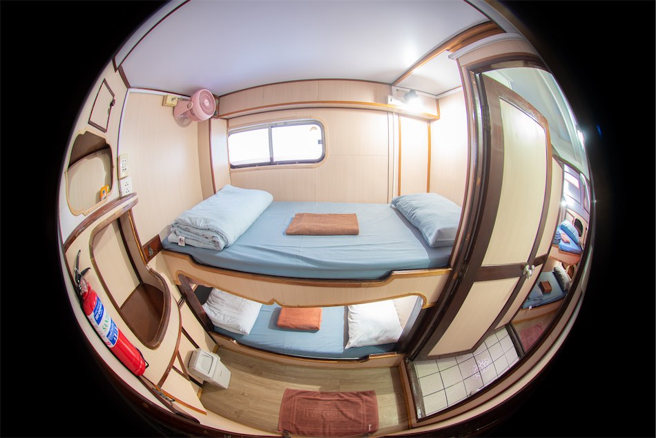 Manta Queen 6 accommodates 14 guests in comfortable air conditioned twin bed shared ensuite shared cabins.