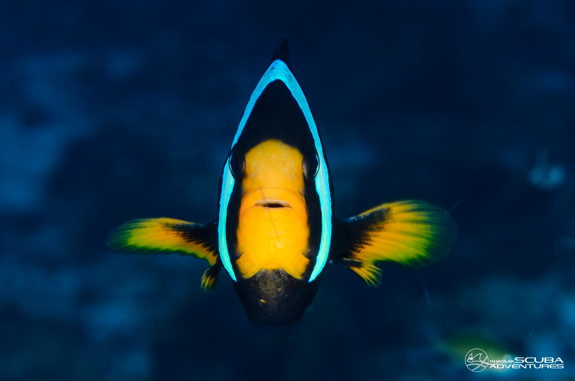 The very first trip of the season was WET! Still having leftovers from the SW monsoon, most of our dives were in the rain. No worries though, plenty of great visibility and blue water underneath. We started at Similan Island No. 5 with Anita's Reef, home to large Tunas, Moray Eels and the famous Blue Spotted Stingrays. With a little wind and wave action the amazing “Captian Koh” snuck us into flat and calm resting places for our surface intervals before rocking and rolling to the next spot. The water stayed blue thru the entire trip and, being at the start of the season, most sites were all to us! From the swim thrus at Elephant Head Rock to the Dome at Koh Tachai. Schools of barracudas on the Dome and Three Trees were added bonuses. Koh Bon even brought us a big black tip and a sleeping marble ray!! Our first night dive at Similan Island No. 8 Beacon Reef brought us an octopus, swimming flatworm and hunting fimbriated morays among the rest of reef celebrities. Hawksbills made frequent appearances throughout the trip and we even spotted a few sea kraits to fill up the reptile category.