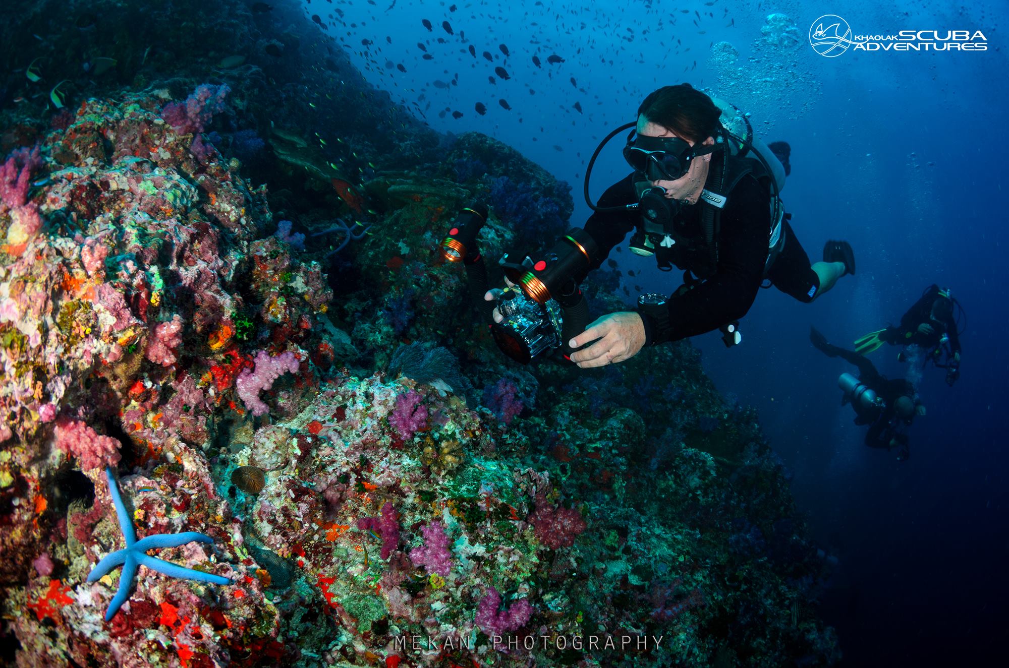 Whats better than starting the day with an early morning dive at legendary Richelieu Rock where we sighted an Octopus changing colors and lots of Scorpion Fishes trying to hide from our guides sharp eyes by camouflaging themselves between the purple corals. Big schools of fishes swimmimg and dancing in the current around the top of the rock just like in a Cousteau Film.