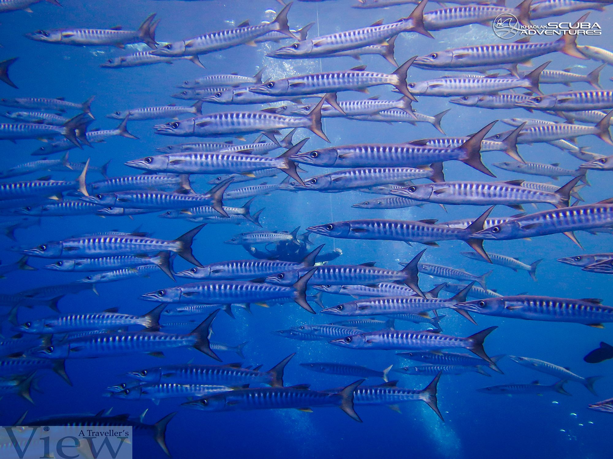 The morning began with the WAKEY wakey a bit earlier than usual (6mins). After Joes briefing out group 1 jumped in. During the safety stop, one of our guests wanted to propose marriage to his GF. And so be did, using the help of Hardik, he presented her with the slates saying will you marry me and YES she said with a huge grin and the regulator still in place. The large school of barracuda felt like they were the audience paying their visit.