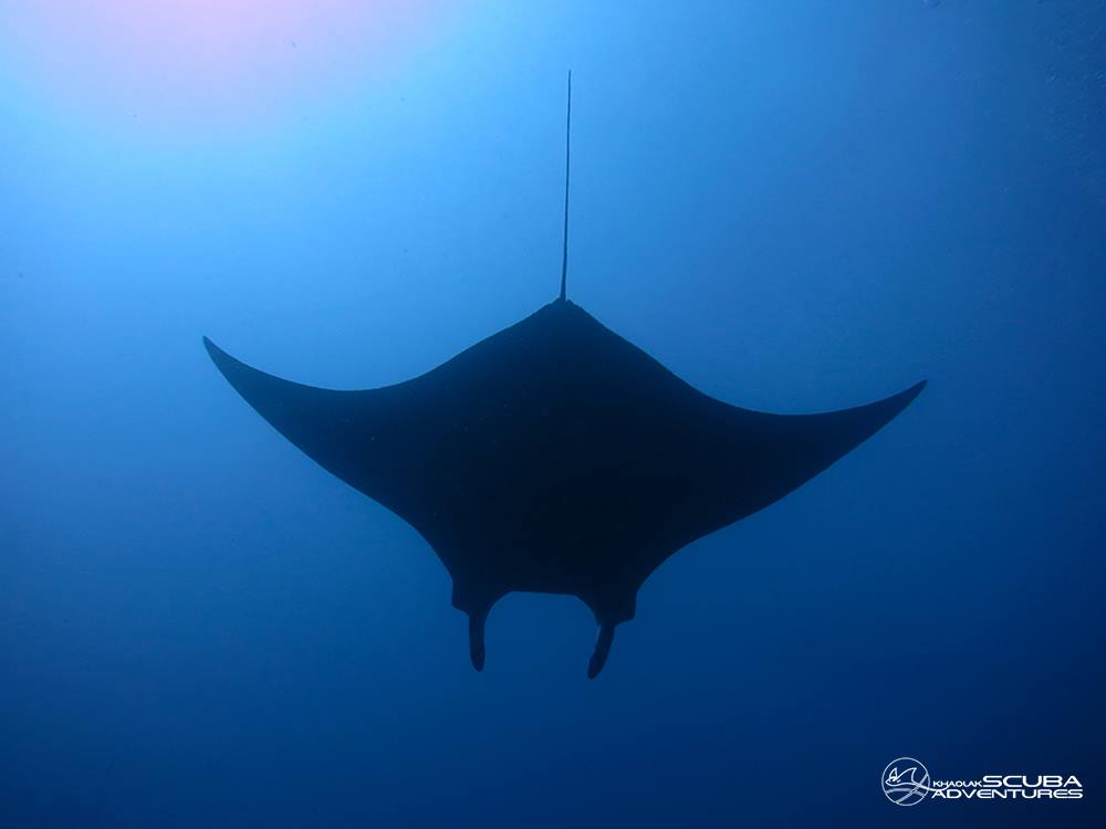4th and final day of the trip! Back at Koh Bon Island. We started with an early morning dive at the Koh Bon North Ridge. No manta rays this time but instead we’ve got a huge fantail marble ray also some octopuses and moray eels. Second dive we jumped at the West Ridge and got a first manta ray straight away, then a fantastic dancing manta show started! Besides that two big napoleon wrasses were coming by very close and looking into divers eyes, few octopus fighting each other for the right to make more octopus and schools of emperors together with bluefin trevallies hunting for glassfish.